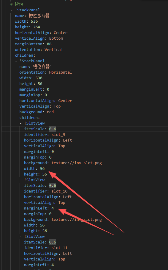 我这边的容器宽度是536 一行9个槽位 8个marginLeft:4 56*9+4*8正好等于536